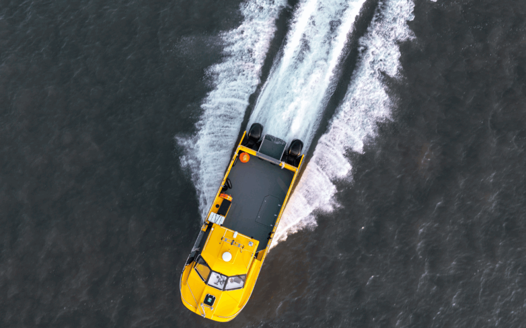 Every aspect of the AX300 Diesel is engineered for precision handling. Our transmission system, developed with our partners at ZF, delivers smooth gear changes, even under load, while our patented AXIS Drive Integrated Steering allows engines to be mounted closer together for improved stability and agility. Combined with dual contra-rotating propellers, the result is sharper, more agile manoeuvring, and with Caudwell Marine’s intuitive Vessel Control System at the helm, operators gain total command, safer operation, and complete confidence at any speed.